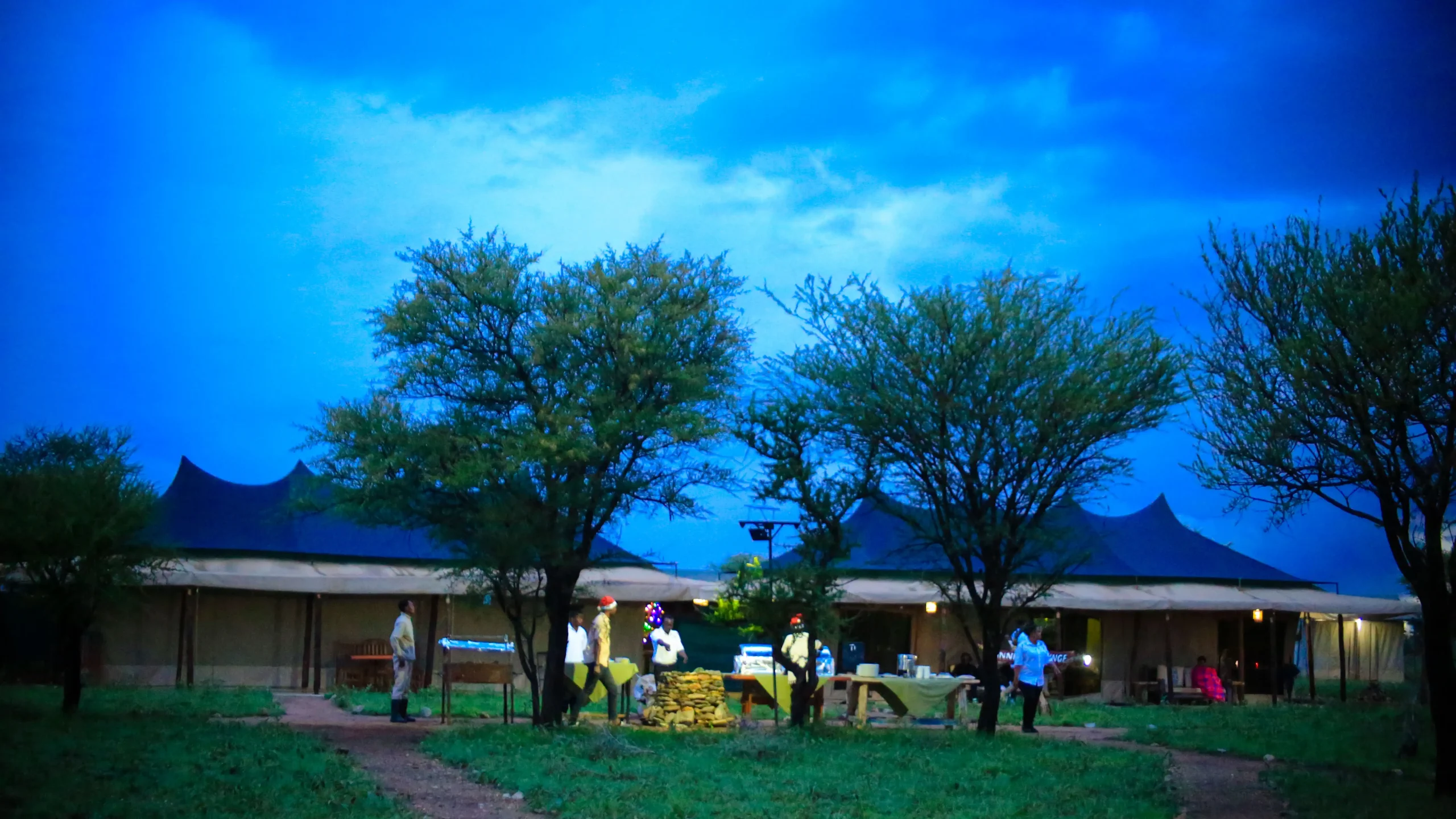 Camp Amenities: Lounge and dining tents, a bar π·, boutique, and evening campfire π₯ gatherings under the stars β¨.